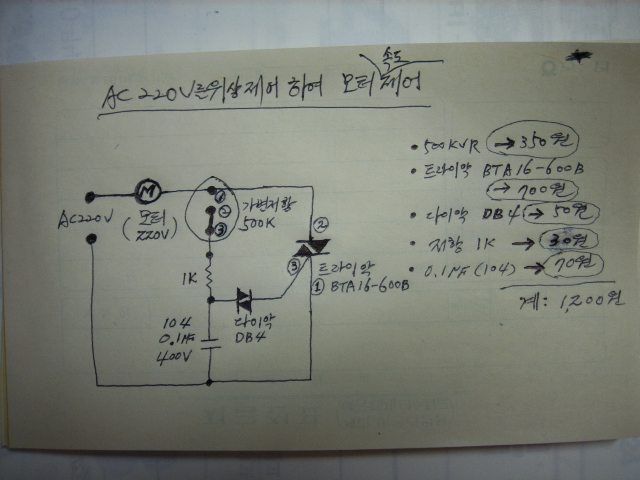 1.2번회로는 기본적으로 완전히 같은 TRIAC 제어방식 입니다.